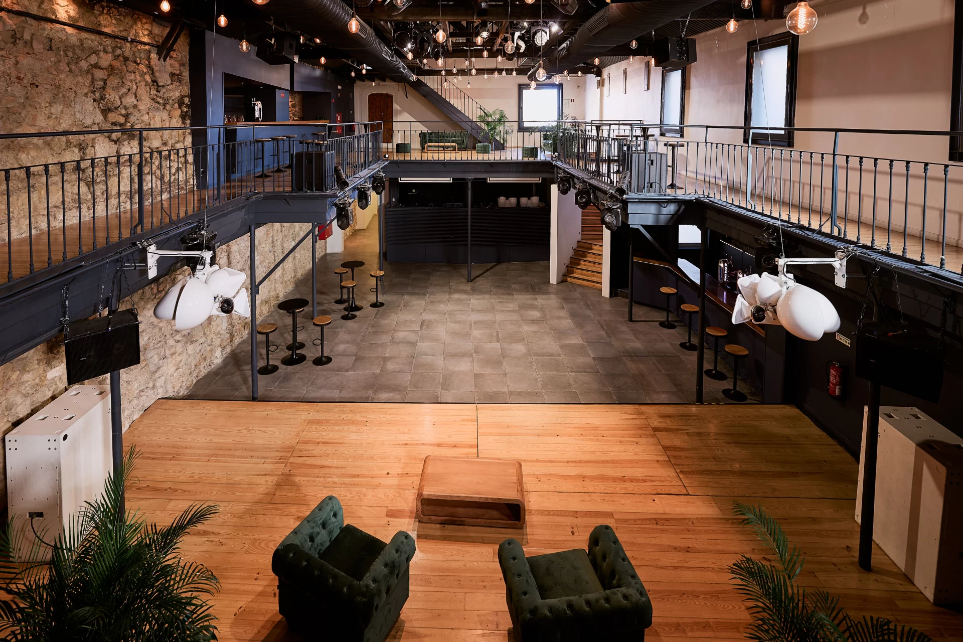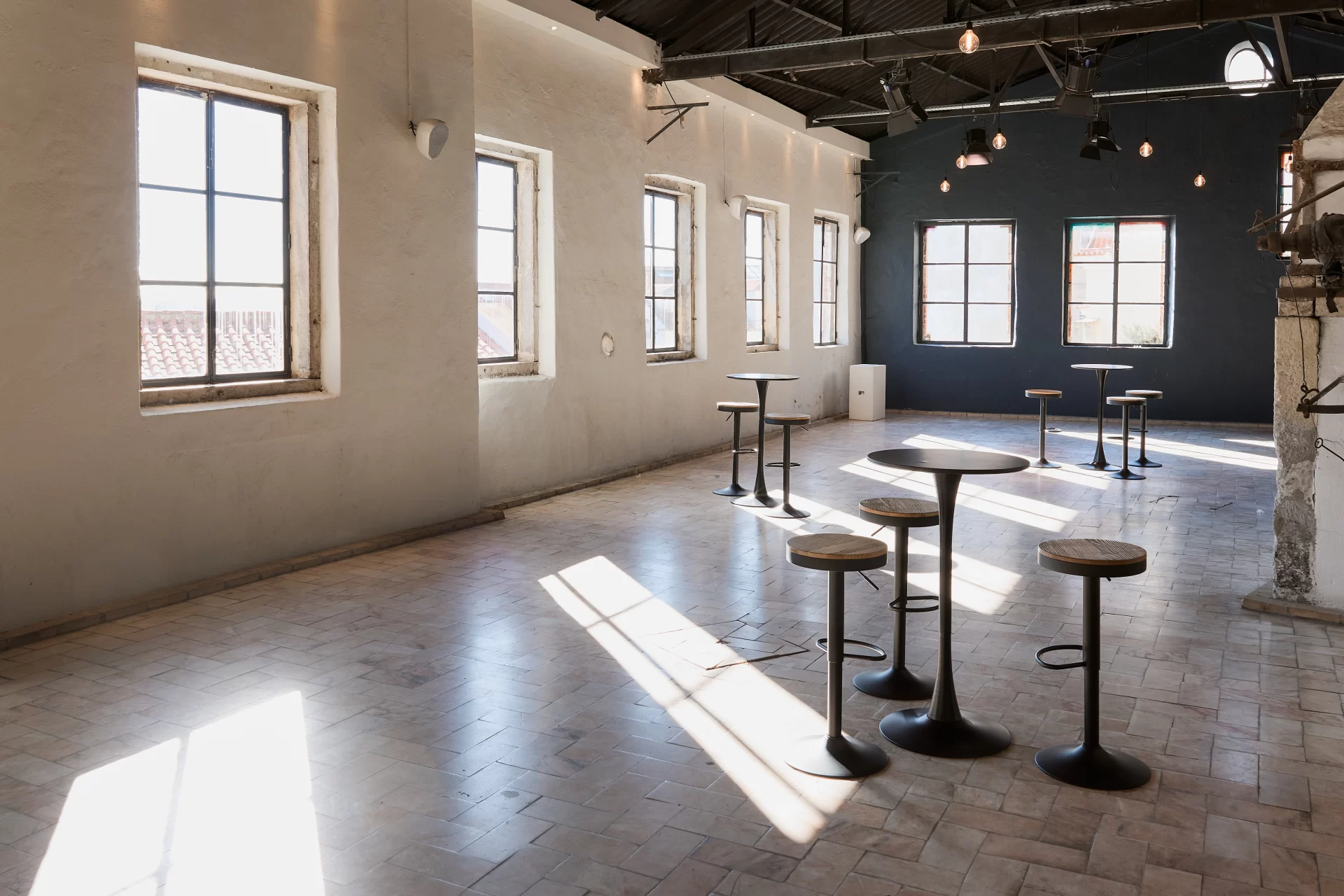Com origem numa antiga fundição de metal, esta sala foi adaptada para receber eventos como workshops, reuniões e exposições, preservando os traços industriais e criando personalidade ao ambiente.